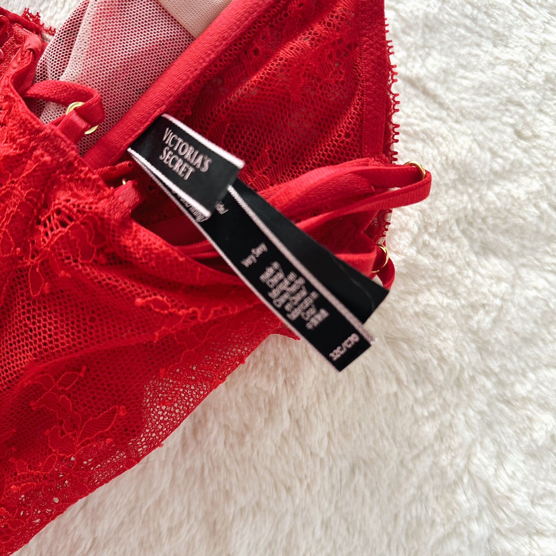 red sheer mesh cropped corset top with nude cups and red floral lace overlay, with a strappy cutout at the bust, and zipper closure at the back side, circa january 2020